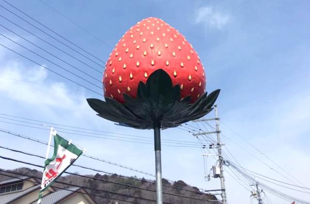 大きなイチゴのオブジェが目印の「ゆめさき苺ハウス」。