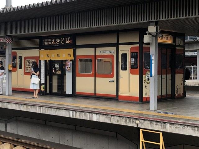 Twitterで知っていたのですが、在来線上り駅そばの店舗外観が汽車型(キハ58)みたいなこんな感じでリニューアルオープンをしていました。