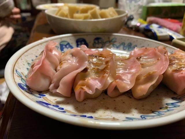 皮に梅干しの果肉を練り込んでいて、中身にも梅干しの果肉が入っていますが、梅干しの酢っぱさはありません。ピンク色がとても綺麗です。
