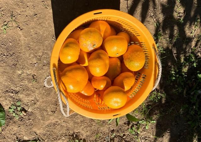 ミカンは販売用に育てているのではないので、大きさもバラバラで皮も厚めです。でも味は濃く、とても美味しいです。今年はカラスだけでなく、猪にも食い荒らされたそうです。