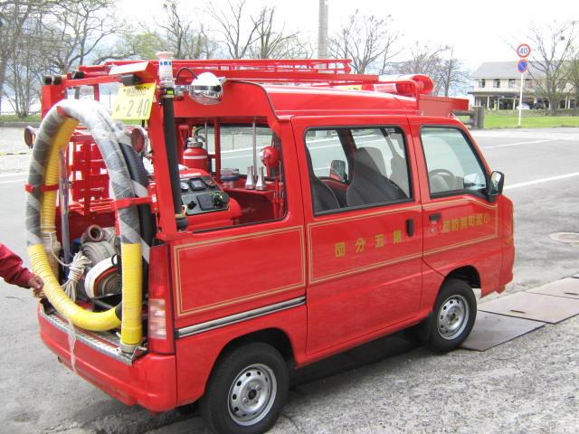 そのキュートなスタイルに見とれて、しばし消防団のおじさんと談笑しました。