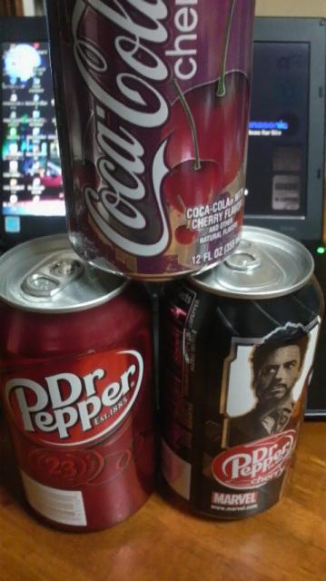 先月三沢航空ショーで買ってきた本場の<チェリー・コーク><Drペッパー・チェリー><Drペッパー>の3種です。