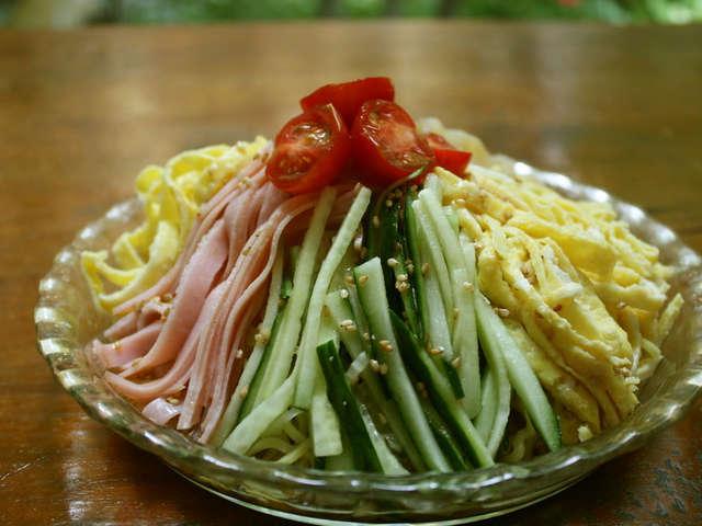 典型的な盛りつけは、深めの皿全体に麺をなだらかに盛り、具として細切りにした、肉類(ハム、叉焼、蒸し鶏など)、錦糸卵、... [ 続きを読む ]