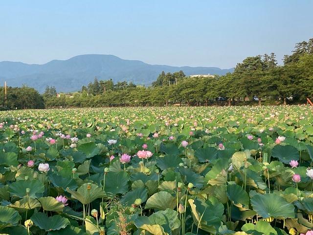 高田公城址園の外堀を埋め尽くす蓮です。日中は気温が上がり、とても散策どころではないので、早朝に出かけました。
