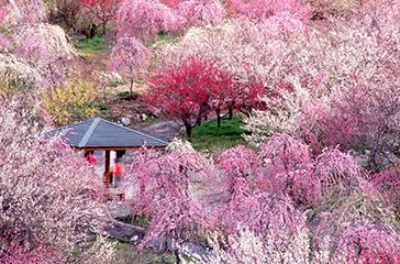 平成5年に開園した世界の梅公園。園内では日本・中国・台湾・韓国など世界の梅、約315品種(約1,250本)を楽しむ事ができます。