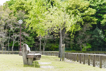 | 奈良観光を語るうえで欠かせない存在が、愛らしい鹿たちが出迎えてくれる奈良公園だ。総面積約511ヘクタールという広大な敷地内には、世界遺産の東大寺・興福寺・春日大社をはじめ、奈良を代表する歴史的名所が隣接している。その奈良公園の一角にある「荒池園地」は、明治時代に築かれた池を中心に芝生が広がり、柳が揺れる池畔のベンチは、訪れる人々の憩いの場となっている。本作では、このベンチが西畑夫妻の思い出の場所としてたびたび登場。 | ![]() |