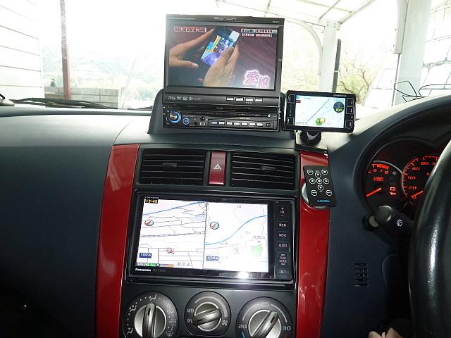 システムは、H510WDに、ETC、VICSビーコン、バックカメラ、インダッシュモニターを組み合わせて、上のモニターでテレビ・DVDを見ながら、ナビを表示させる事が出来、非常に使いやすくなっています。