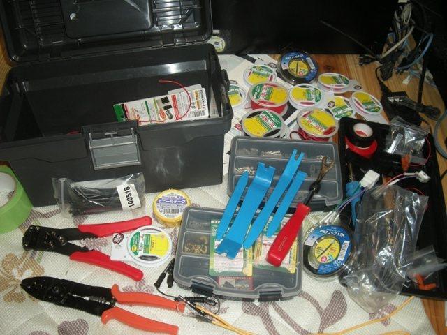私の場合、フットライトを付けたかったので、イルミ電源をギボシ端子などを使い分岐したので、電工ペンチやワイヤーストリッパー、0.5sqのコードやクワ端子等々も購入しました。