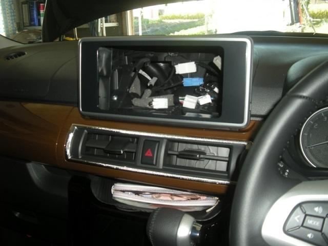 キャストのGターボ“プライムコレクション SA ?”にはダッシュボードの中に純正ナビのカプラーがあるので、社外ナビを買ってもナビ本体との変換カプラーを買い増しすれば、基本的にカプラー又はギボシ端子を接続するだけで作業が済みます。