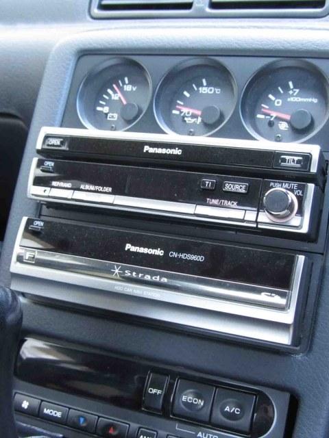 以前、R32GT-Rの灰皿位置にエアコンパネル移設という大技を実施し、2DINスペースを空けてCN-HDS960TDの装着しました。