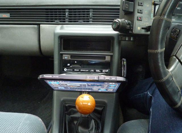 ・旧車のため1DIN3段のコンソールなので、2DINタイプのものに交換して取り付け。(廃車部品を購入)
